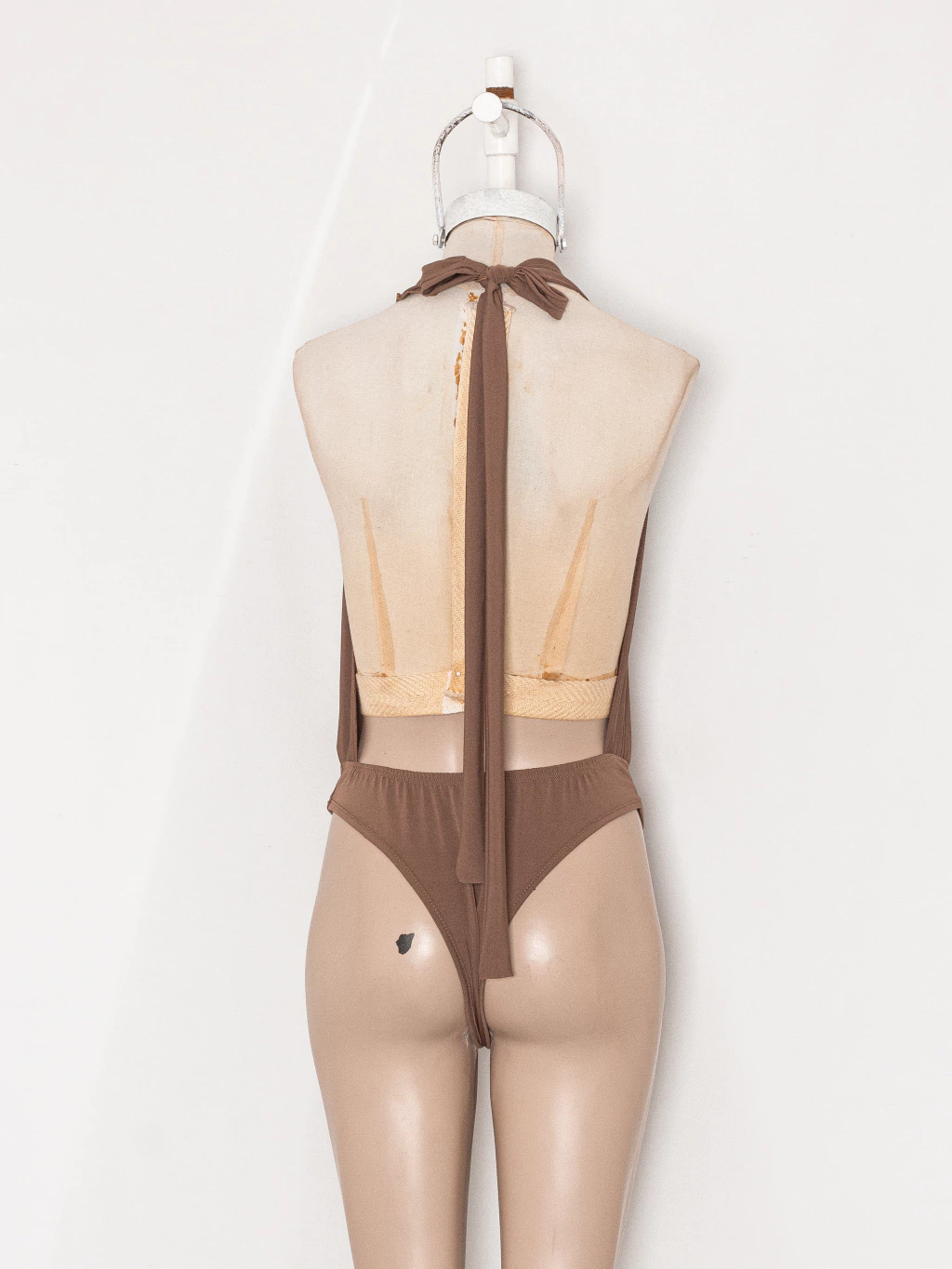 Body de Ity con buche en el delantero y tiras para atar al cuello. Tiene espalda baja con elástico en la cintura. NO tiene ganchos de corpiño.