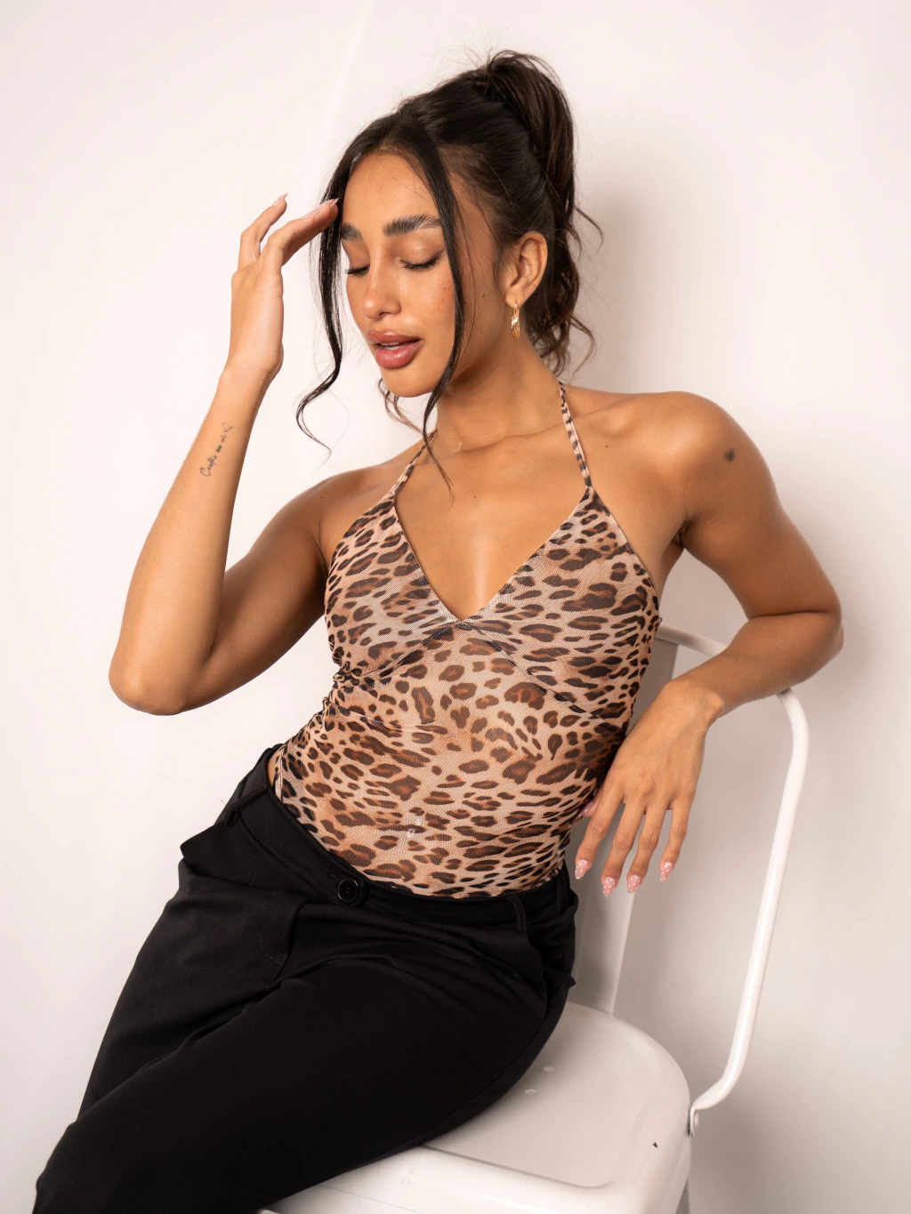 Body de Tul con recorte en el busto, forrería y tiras para atar al cuello.