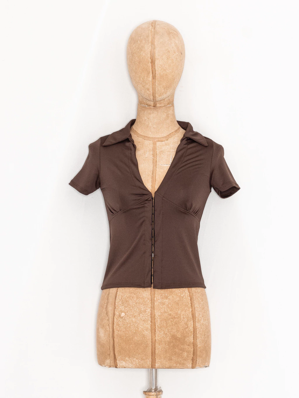 Chomba de Microfibra escotada con cinta corsetera en el delantero.