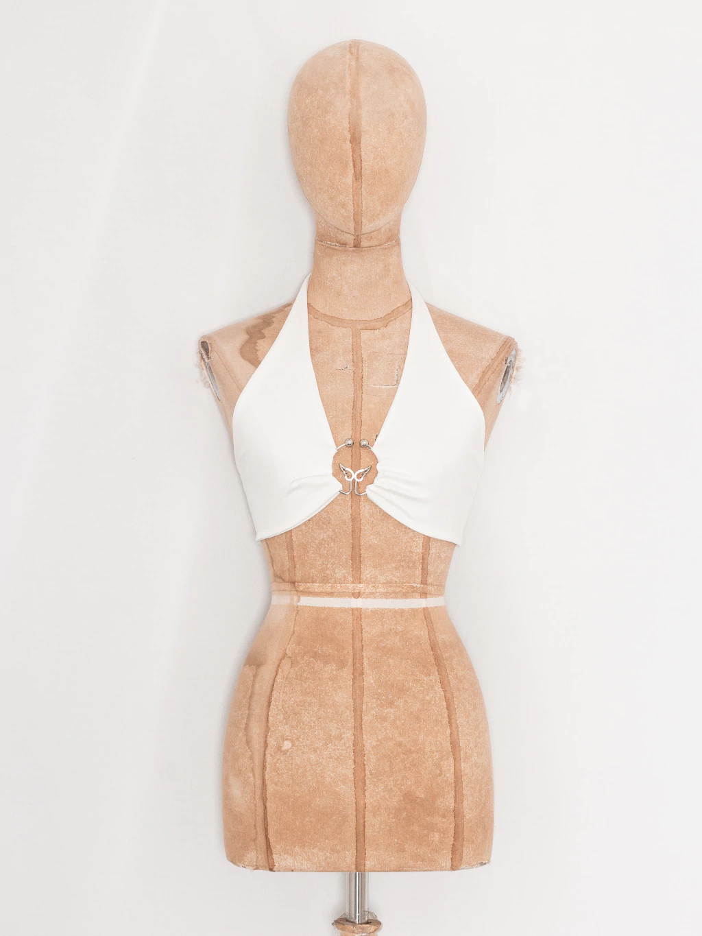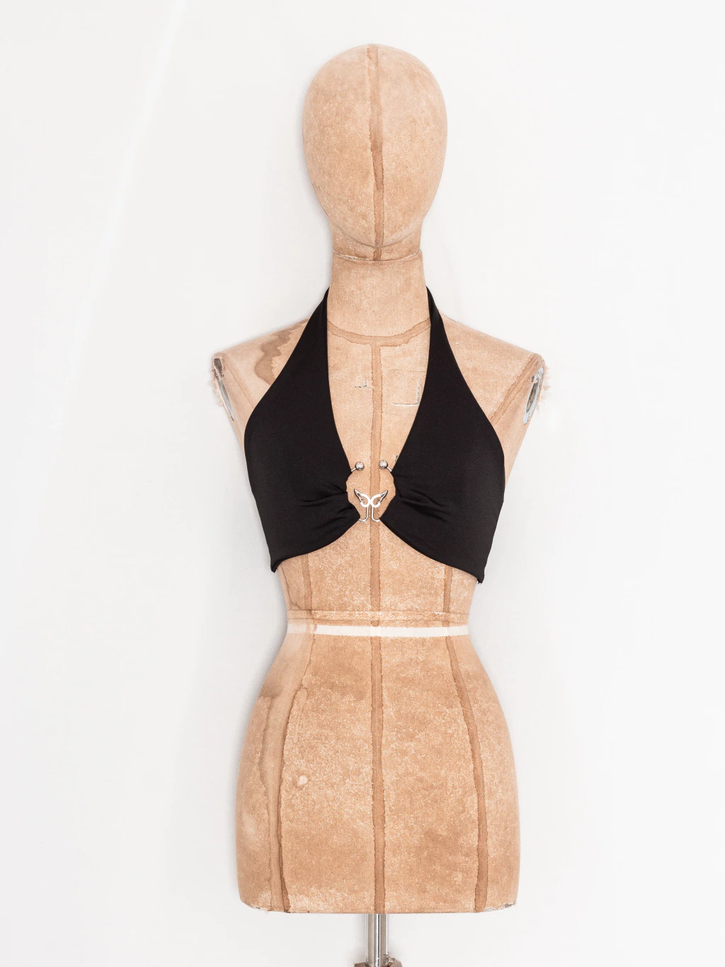 Top de Microfibra escote Marilyn con un accesorio en el delantero y tiras p/atar en la espalda.