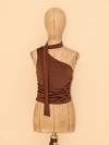 Top de Ity White escotado en V con tiras largas para atar al cuello o usar como lazo y espalda baja con elástico para un mejor agarre.