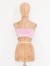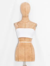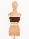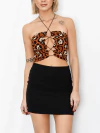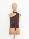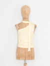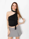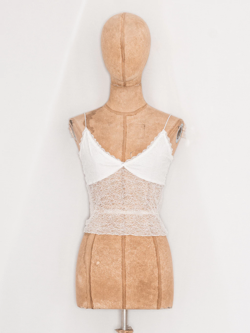 Top escote en V de Encaje con forrería en el busto de Modal soft y terminación en roulotte. Tiene puntilla en los escotes y la sisa, y cordón elástico como bretel.