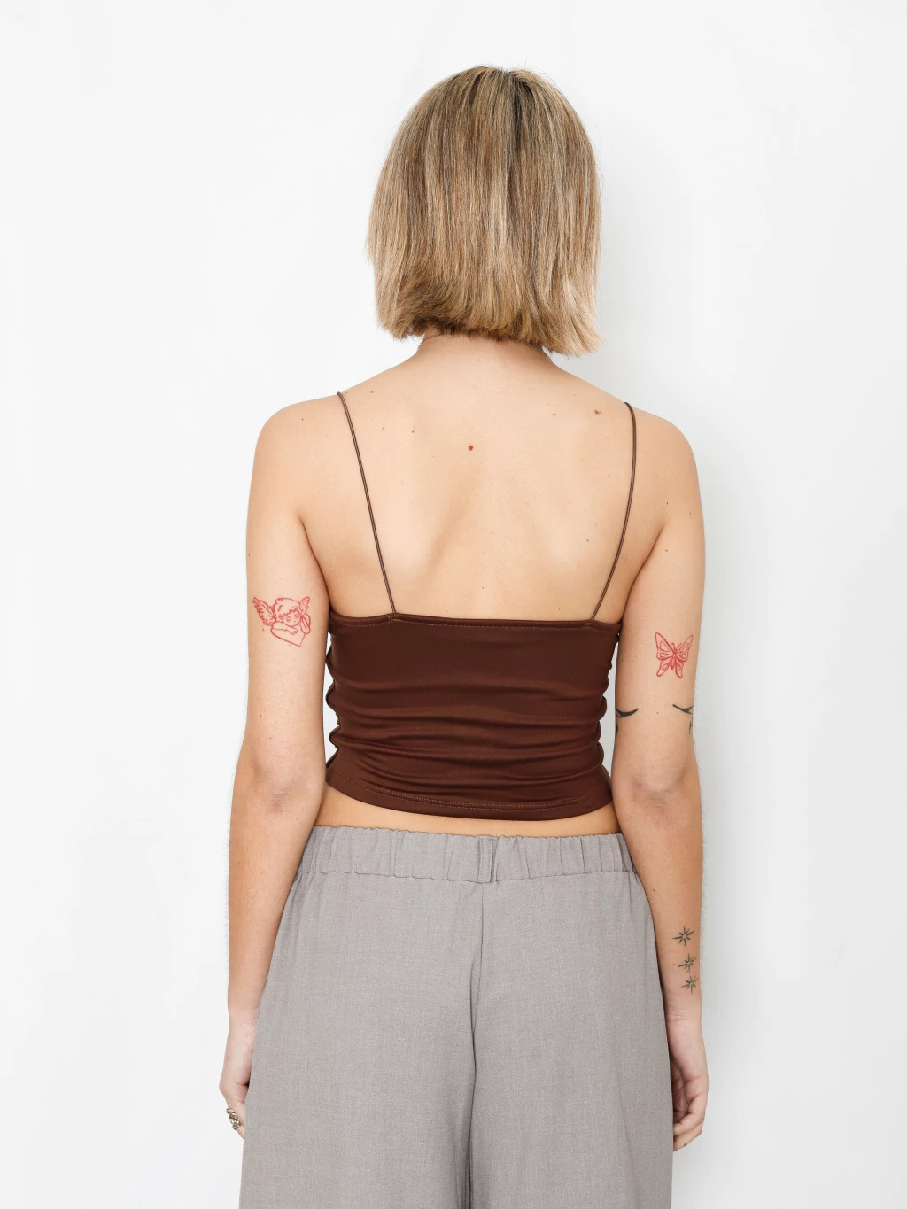 Diseño delicado y moderno que presenta tirantes de cordón elástico a tono que ofrecen un ajuste flexible y cómodo. Cuenta con forrería tanto delantera como trasera, brindando soporte y suavidad. Perfecto para crear looks frescos y con estilo en cualquier momento del día.